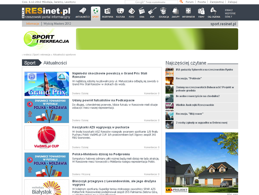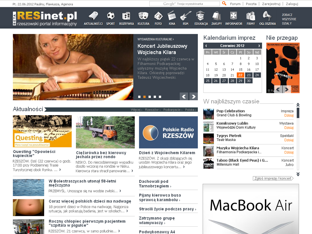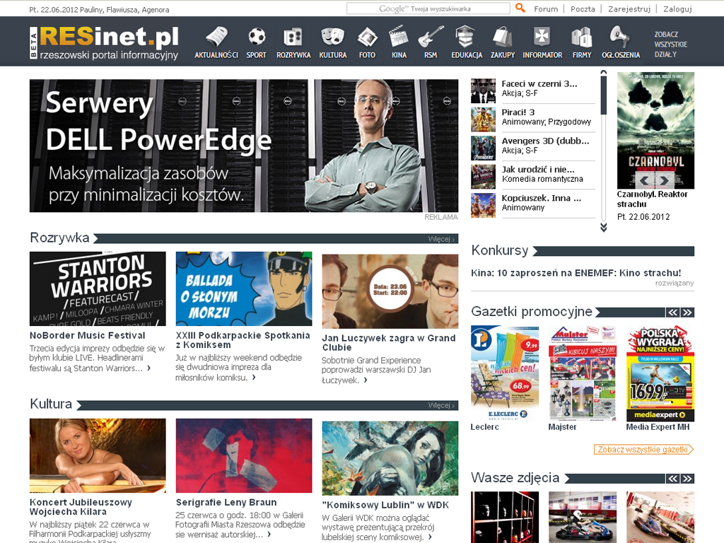 Dokonaliśmy gruntowanej zmiany szaty graficznej oraz funkcjonalności strony głównej Rzeszowskiego Portalu Informacyjnego RESinet.pl, jednego z największych serwisów informacyjnych na Podkarpaciu.