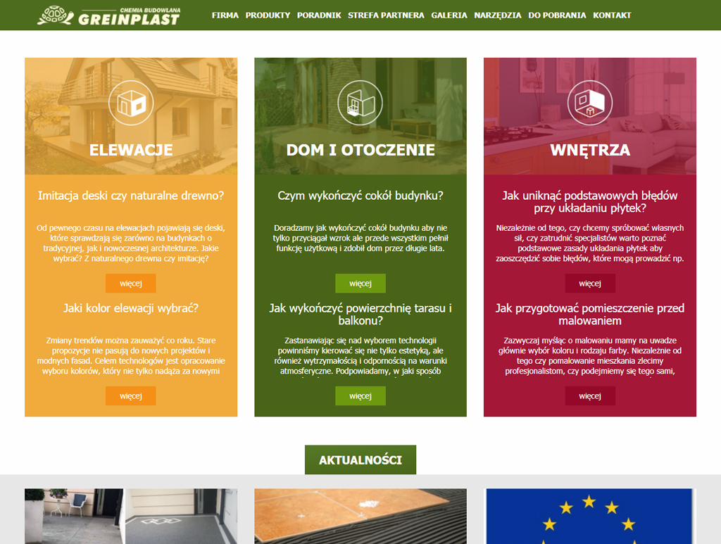 Nowa strona internetowa firmy Greinplast, producenta wysokiej jakości produktów chemii budowlanej.