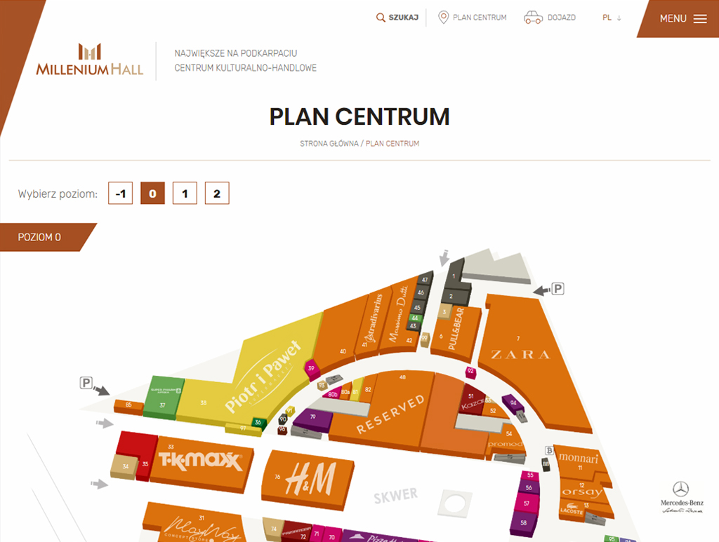 Marki zostały podzielone wg trzech głównych kategorii: Zakupy i Usługi, Restauracje i Kawiarnie oraz Kultura i Rozrywka. Dodatkowym atutem, ułatwiającym użytkownikowi odnalezienie właściwej marki jest czytelna filtracja oraz wyszukiwarka marek.