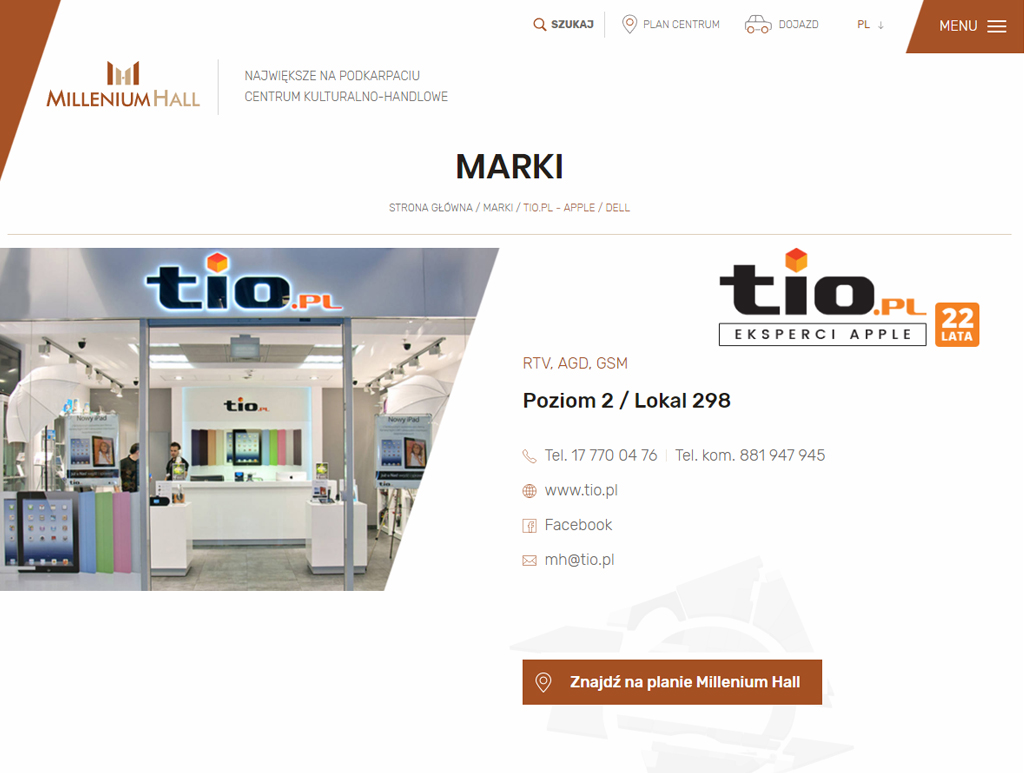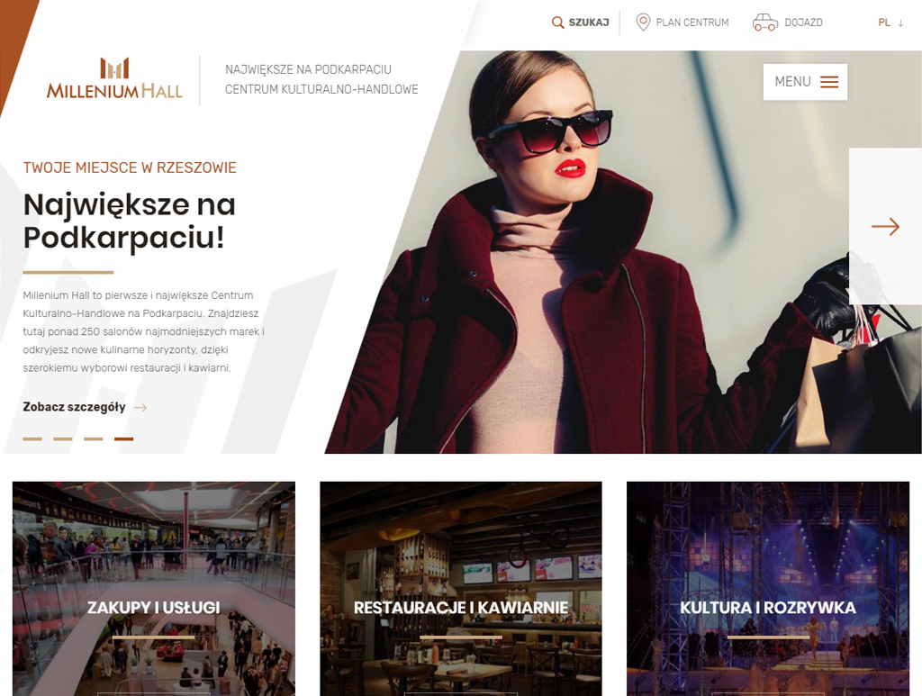 Nowoczesna strona internetowa dla największego na Podkarpaciu Centrum Kulturalno-Handlowego - Millenium Hall.