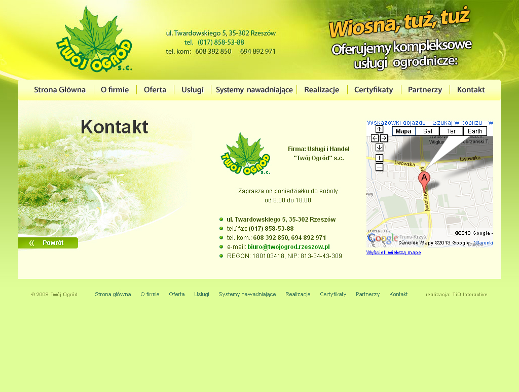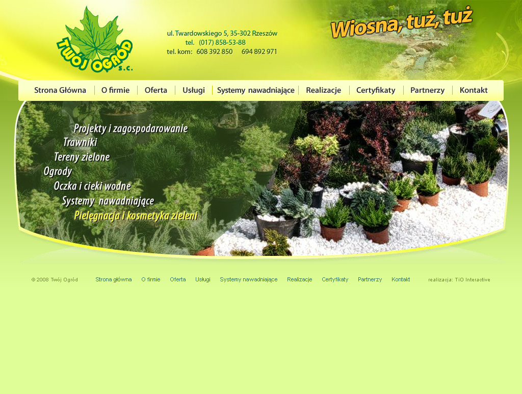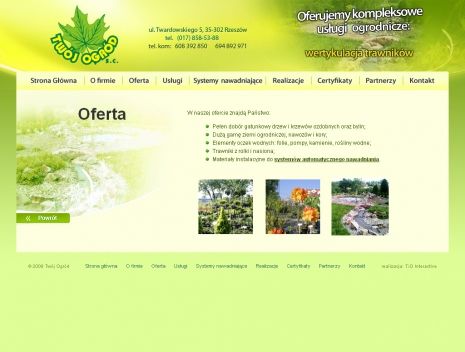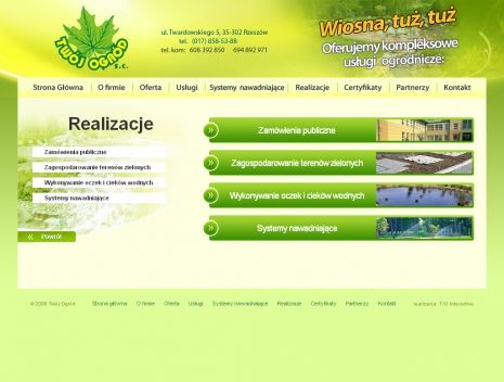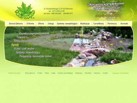 Strona internetowa dla Firmy Twój Ogród S.C, zajmującej się kompleksowymi usługami ogrodniczymi.