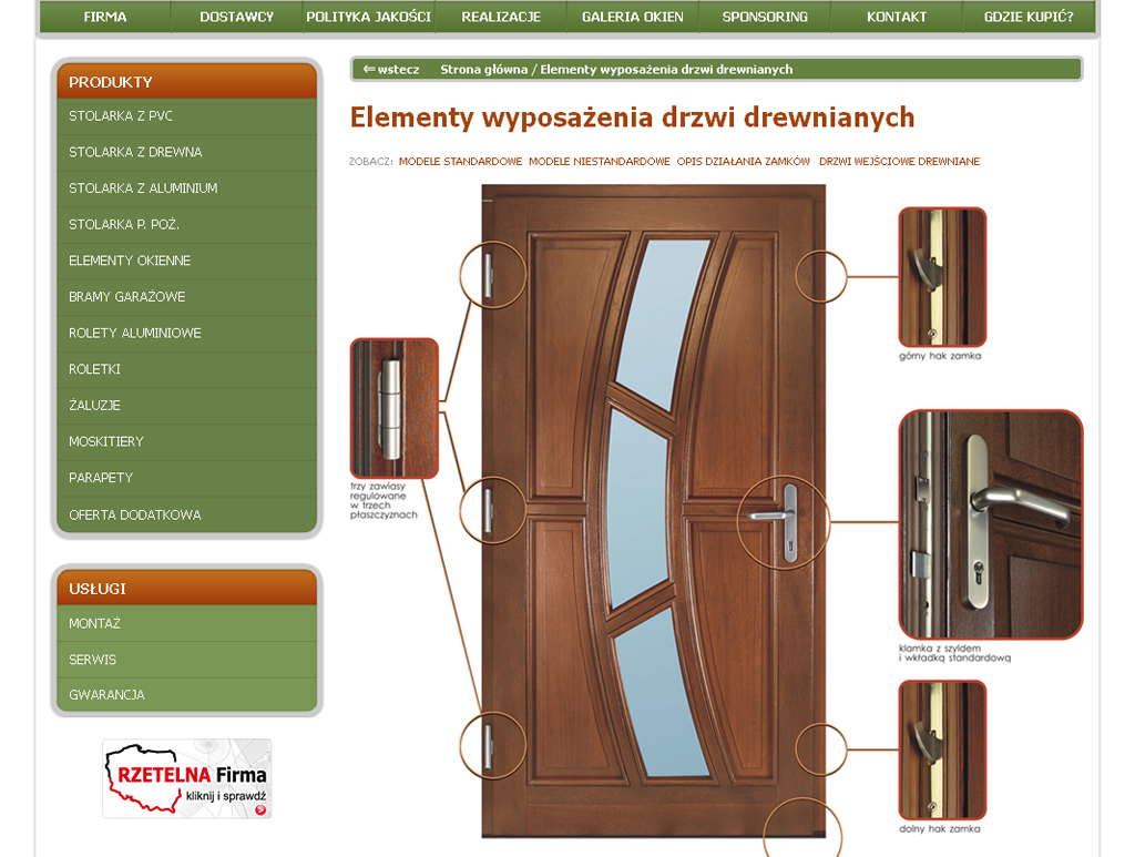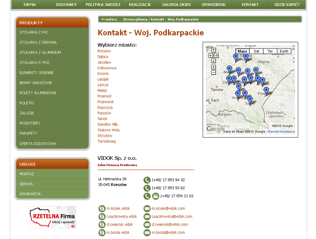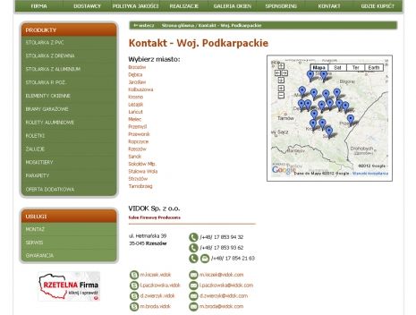 Wysoce rozbudowana struktura menu  kategorii, pozwala dotrzeć do niezwykle szczegółowych informacji na temat produktów firmy VIDOK, okraszonych licznymi elementami graficznymi.