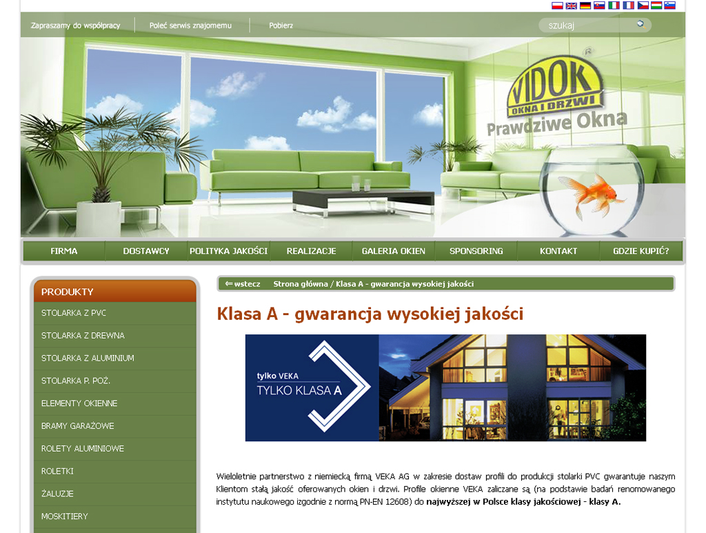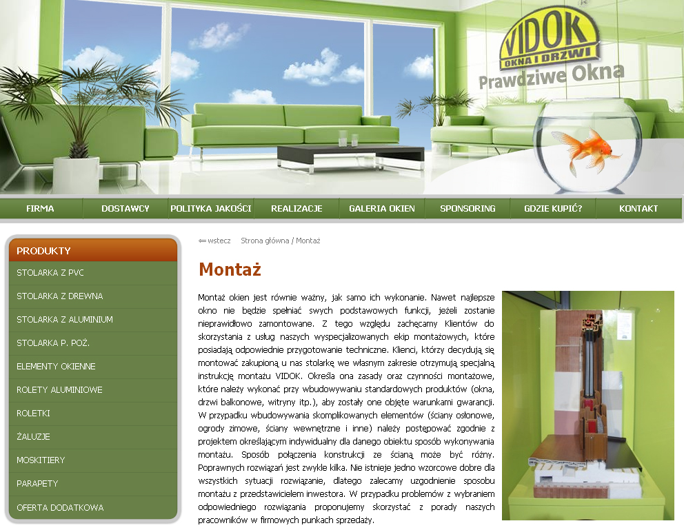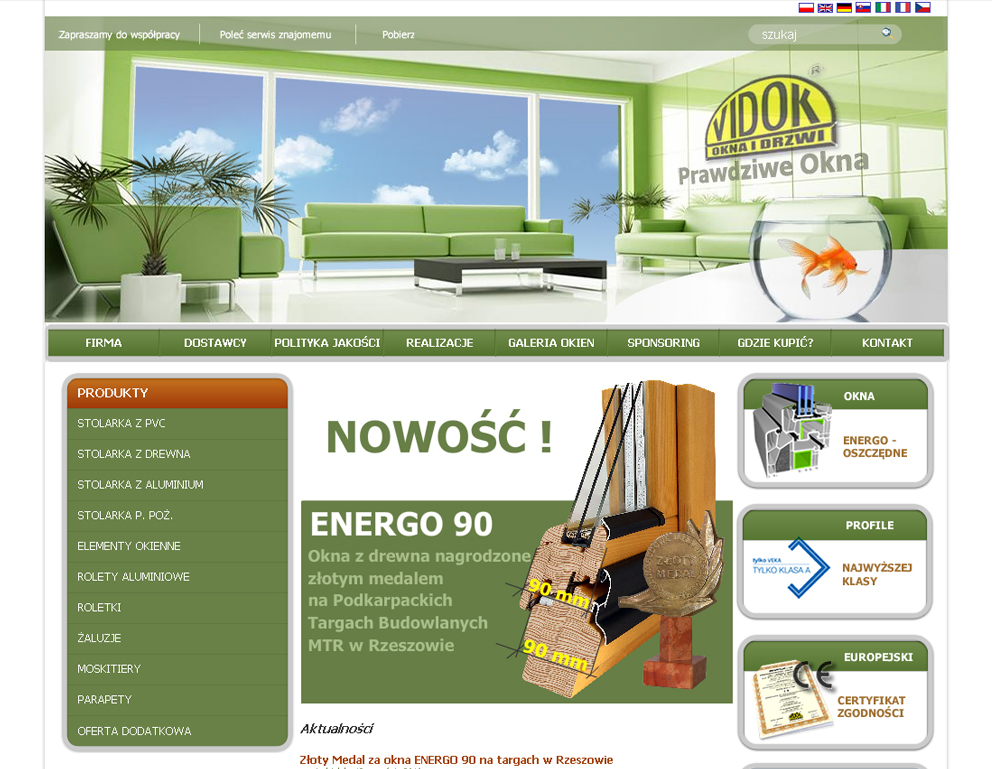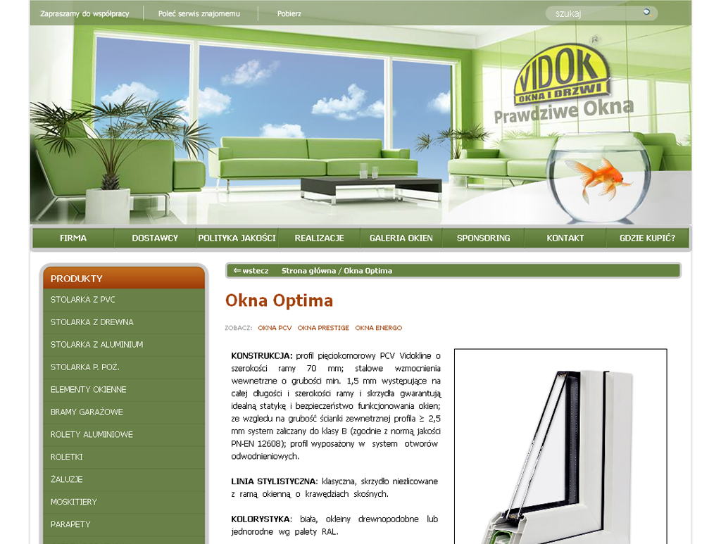 Zaadoptowaliśmy system TiO CMS v. 5.01 pod gotową grafikę, dla firmy VIDOK, producenta najwyższej jakości stolarki otworowej z PVC, drewna i aluminium.