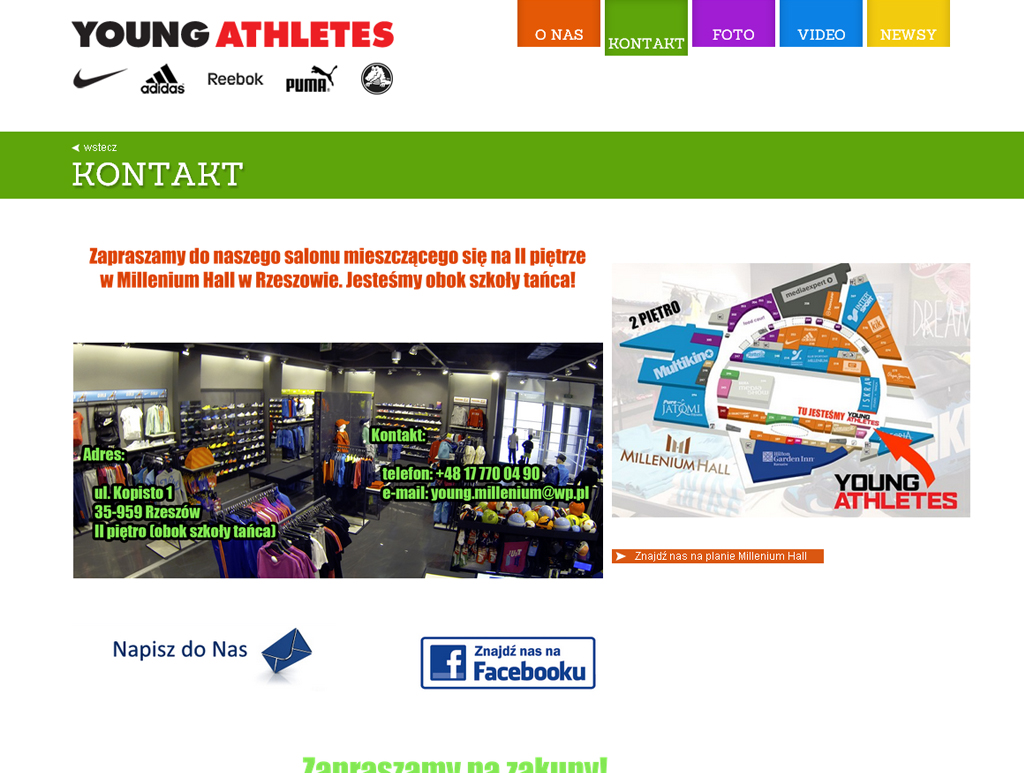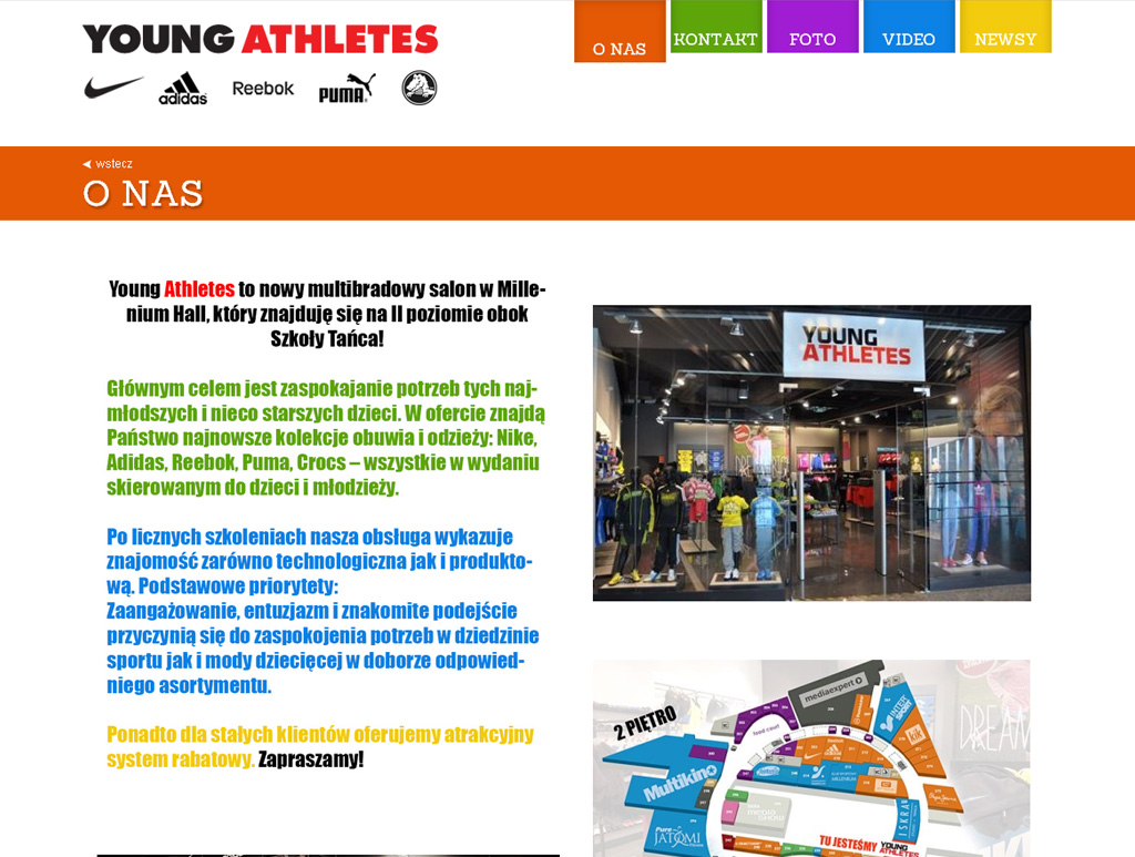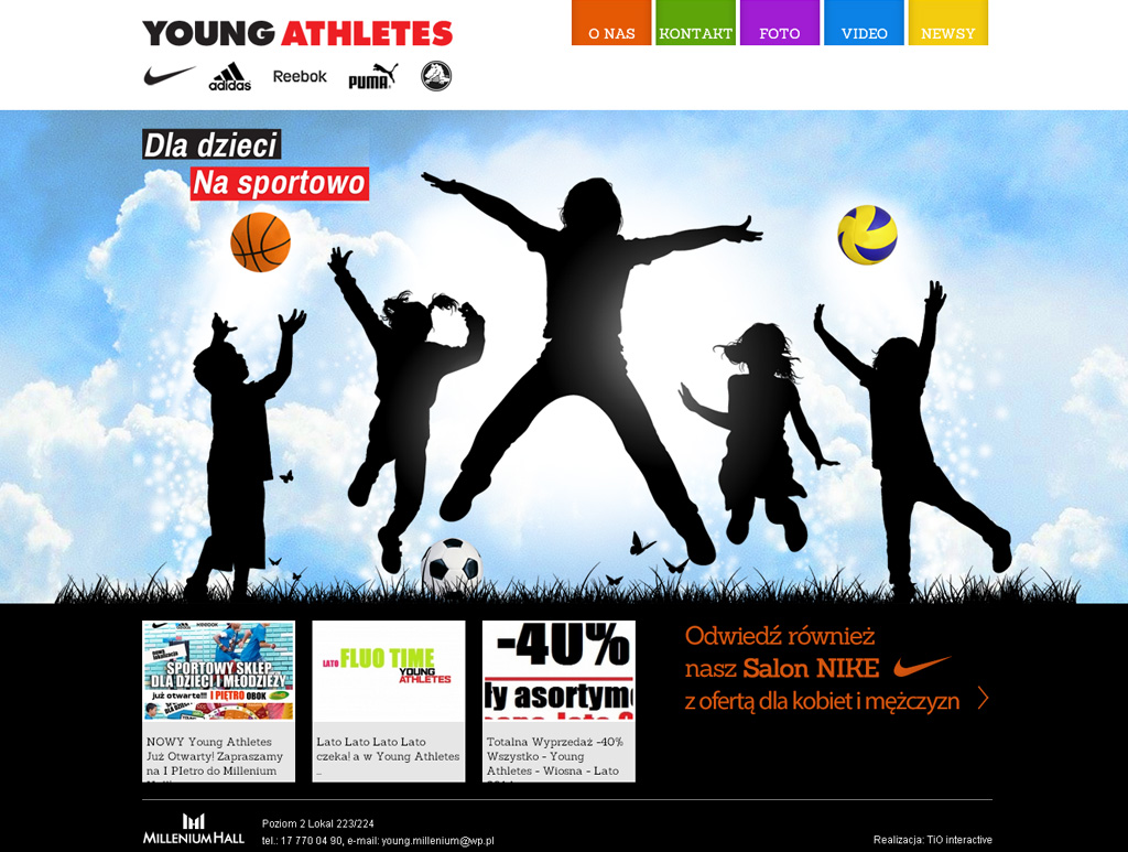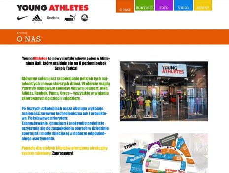 Strona internetowa dla sklepu sportowego dla dzieci i młodzieży z markowymi produktami.