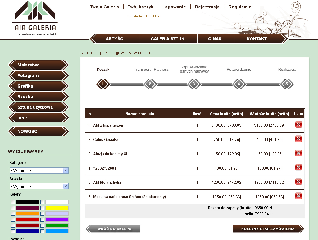 Sklep internetowy dla AIA Galeria