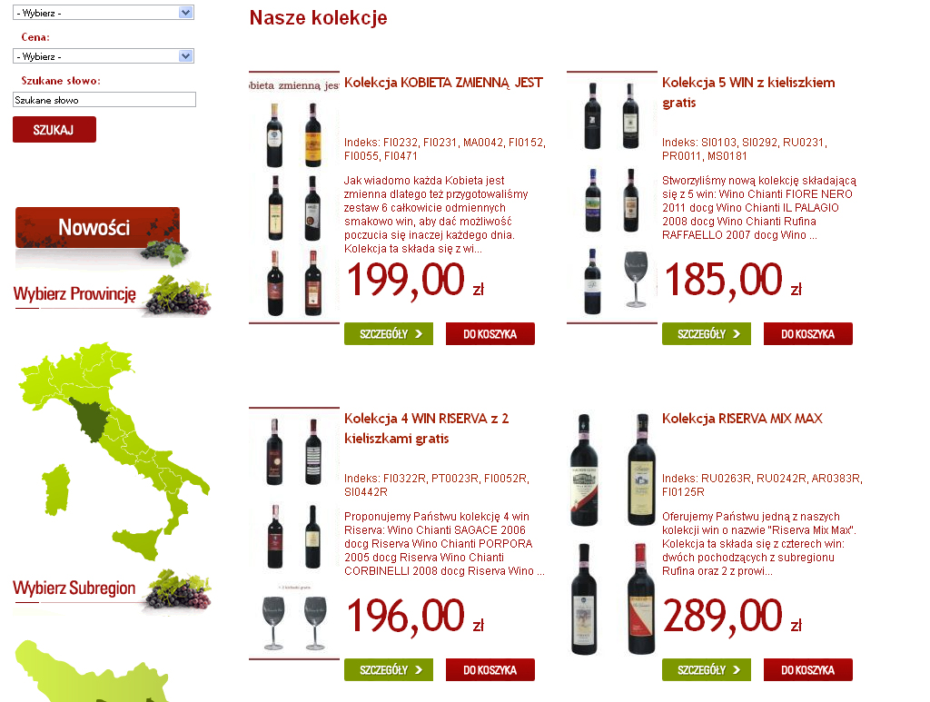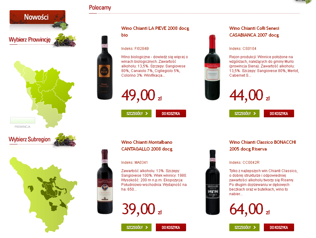 Sklep internetowy oferujący największą w Polsce reprezentację win z regionu Chianti i Chianti Classico.