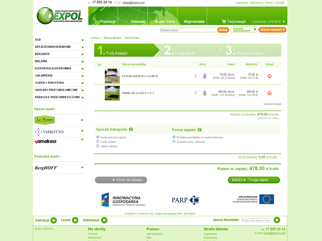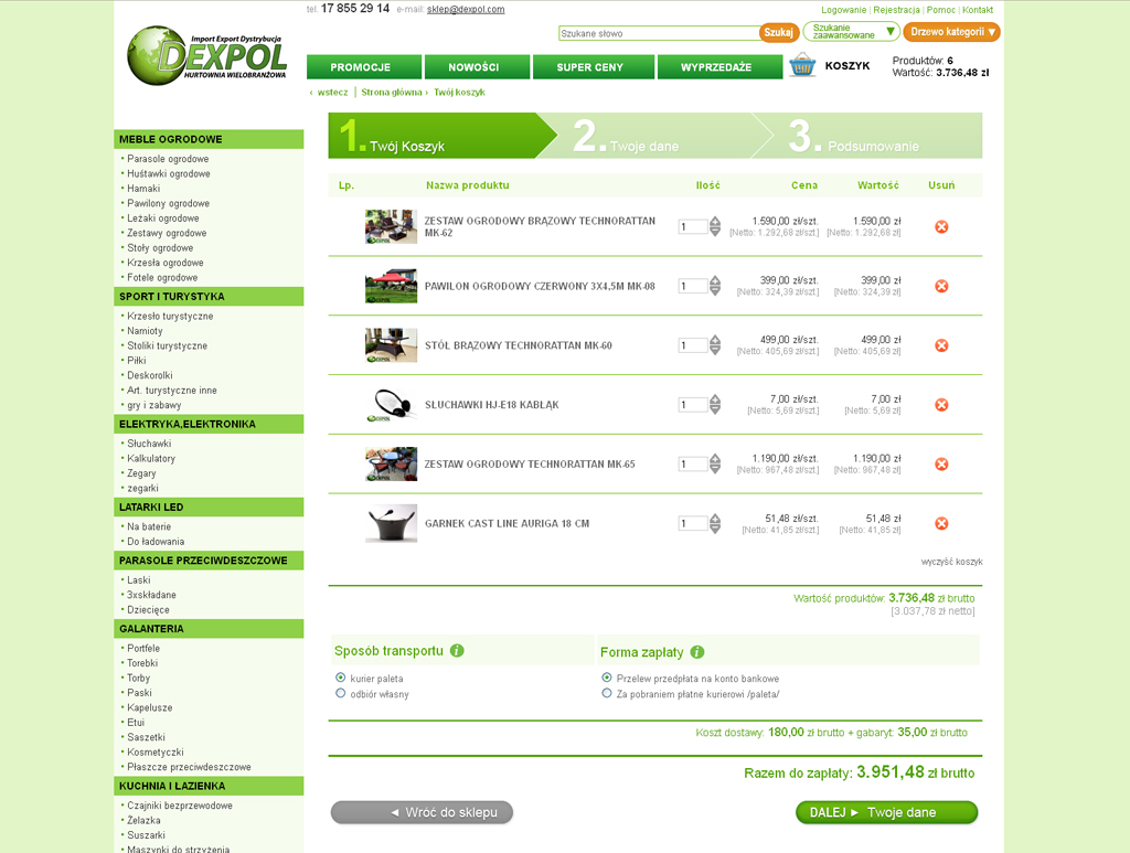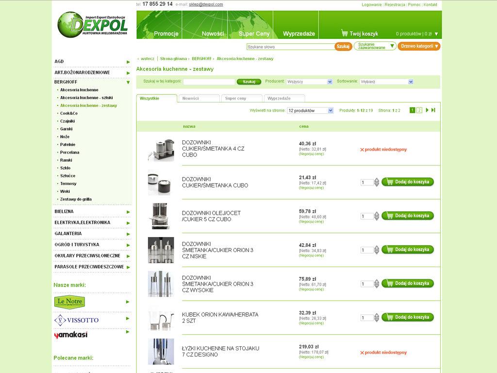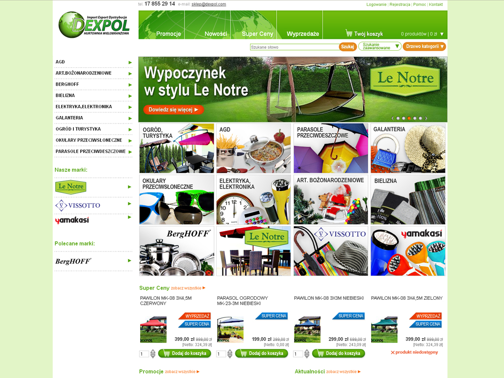 Internetowa hurtownia wielobranżowa Dexpol, zawiera kilkaset produktów w swojej ofercie, m.in. z branży AGD, BIELIZNA, ELEKTRYKA, ELEKTRONIKA czy OGRÓD I TURYSTYKA.