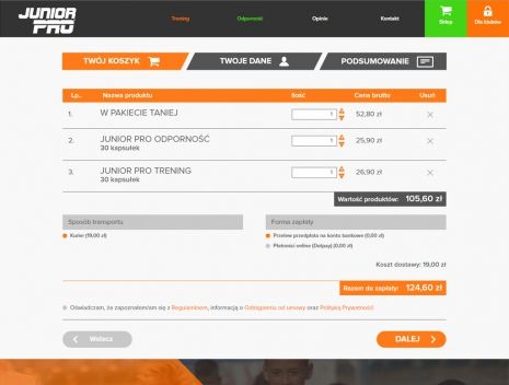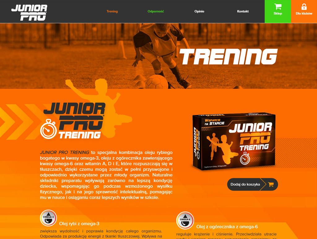 internetowa wraz ze sklepem oferującym specjalne preparaty dla dzieci Junior