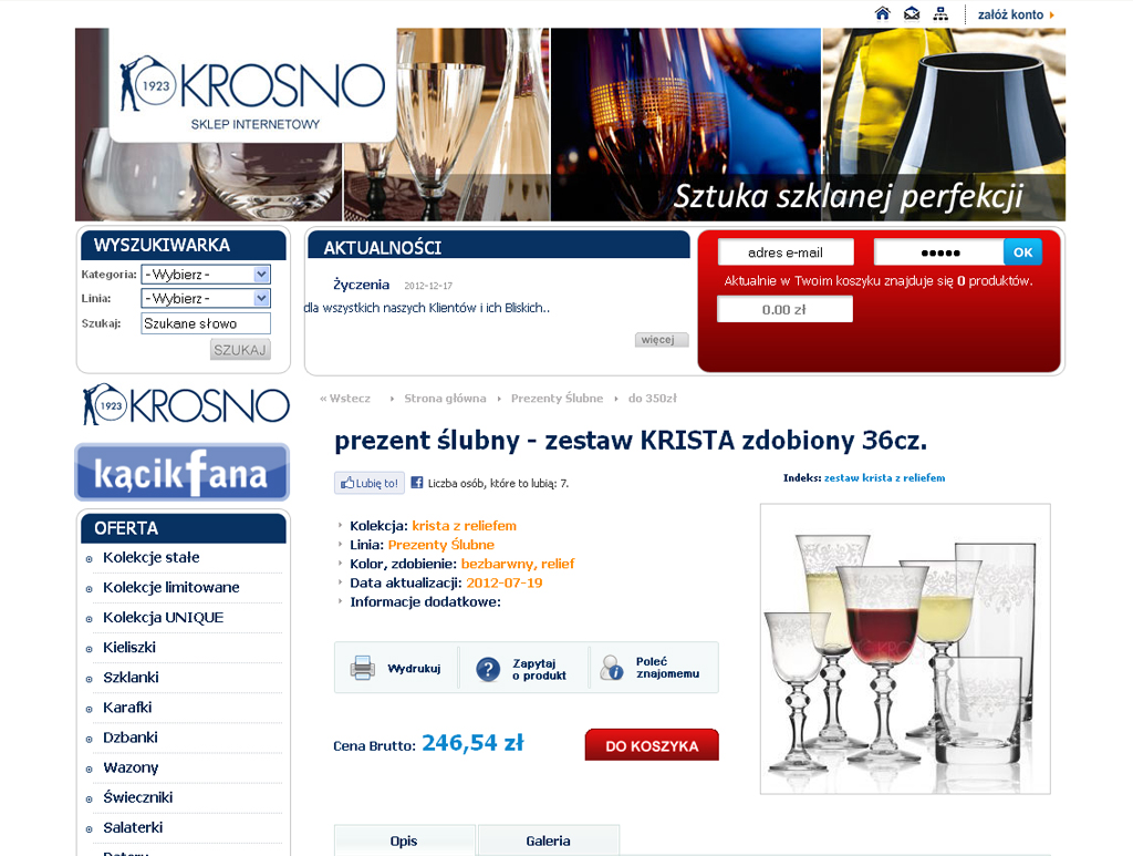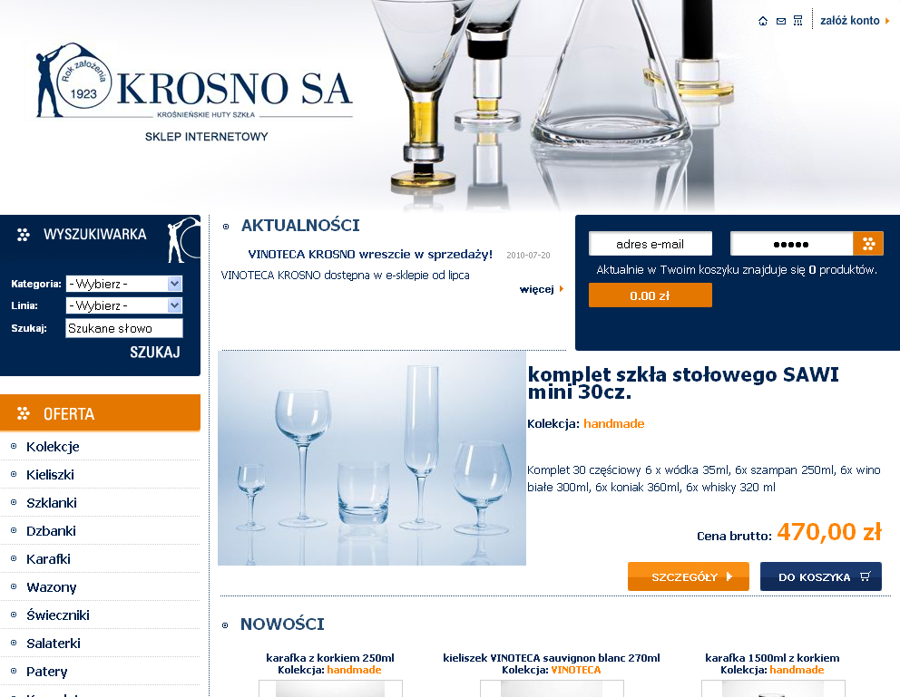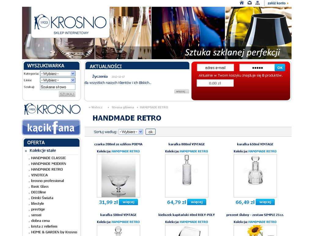 Zaprojektowaliśmy i wdrożyliśmy sklep internetowy dla Krośnieńskich Hut Szkła, jednego z najbardziej znanych producentów szkła gospodarczego w Polsce i lidera rynku światowego w tej branży.
