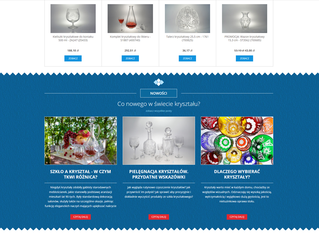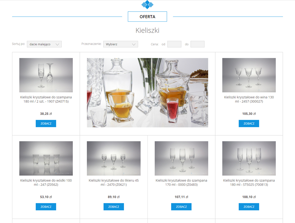Siatka w listach produktów została przełamana wyjątkowymi zdjęciami kryształów.