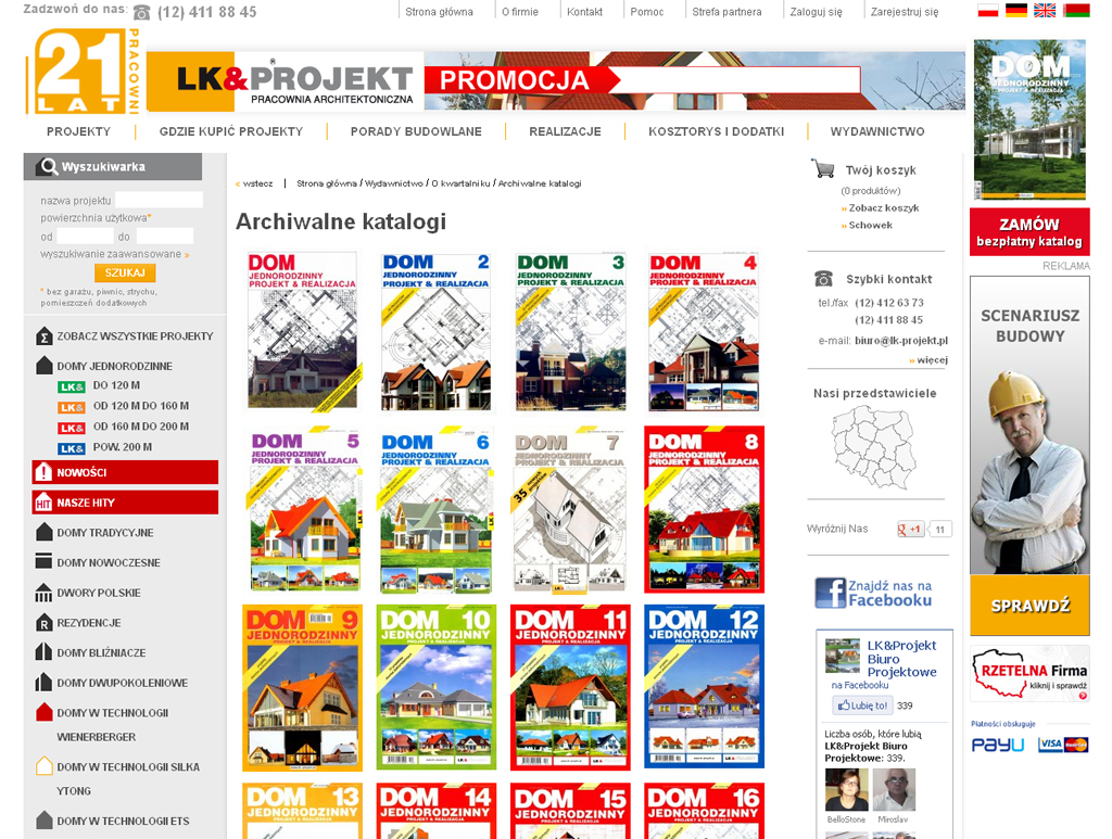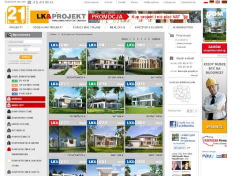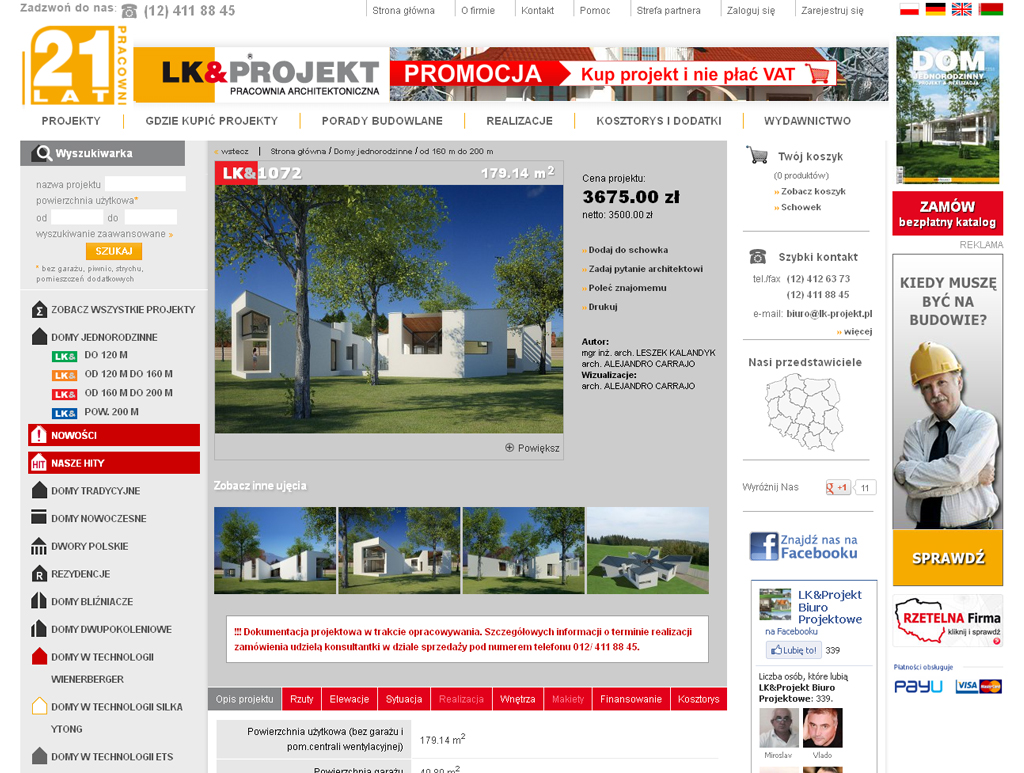 Strona zawiera pełną prezentację projektów z oferty firmy, zawierającą bogaty opis i szczegóły każdego projektu, umożliwiając jednocześnie zakup wybranego projektu on-line.