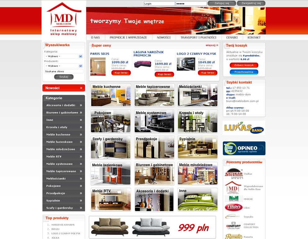 Wykonaliśmy sklep internetowy dla  firmy meblarskiej MebloDom, która od  1983 roku, zajmuje się  sprzedażą wyrobów renomowanych firm, posiadających ugruntowaną pozycję w branży.
