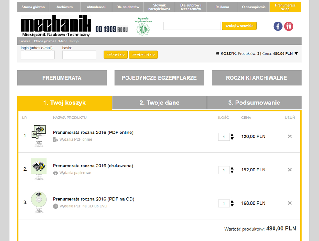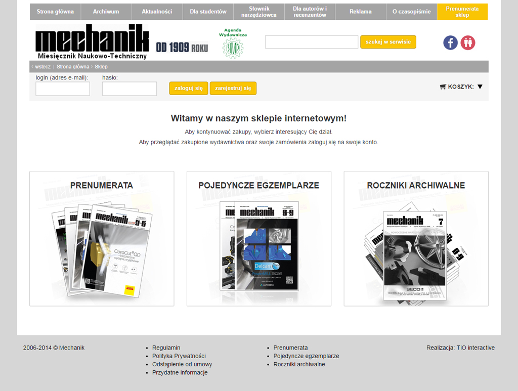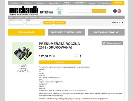 internetowy umożliwia zamówienie prenumeraty miesięcznika Mechanik, zakup