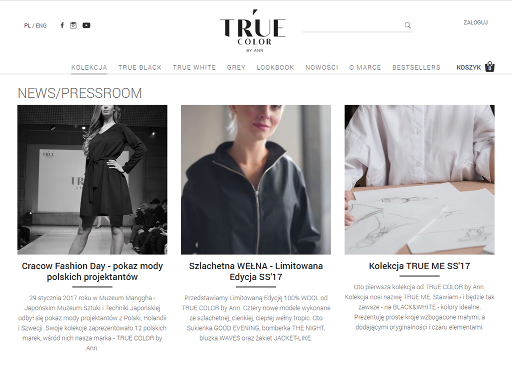 Sklep internetowy dla nowej na rynku marki modowej TrueColor by Ann.
