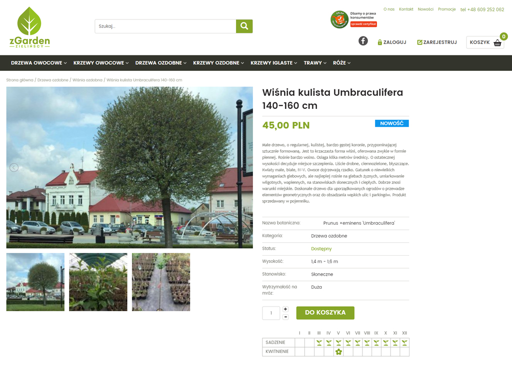 Responsywny, internetowy sklep ogrodniczny prowadzący hurtową i detaliczną sprzedaż roślin.